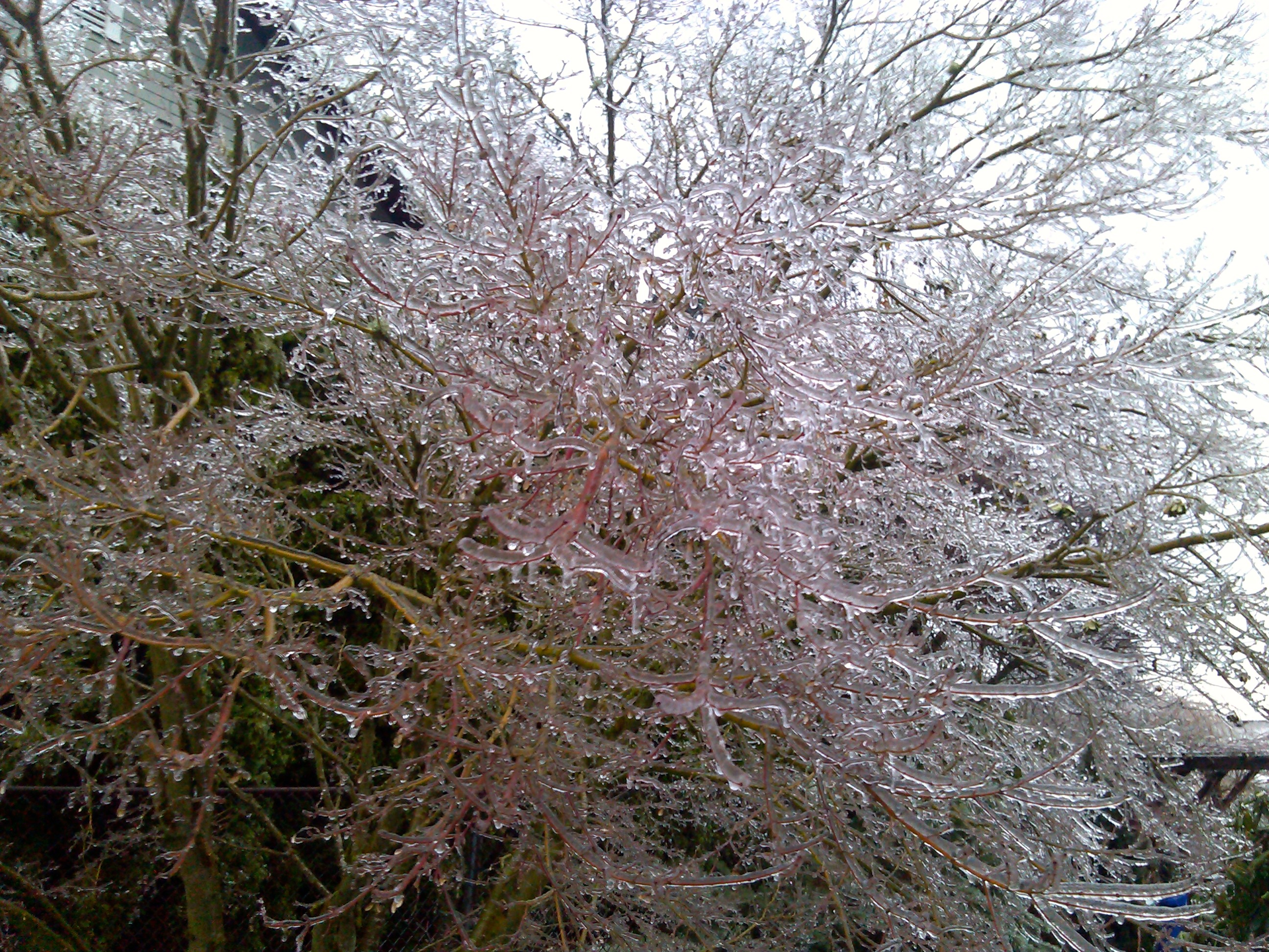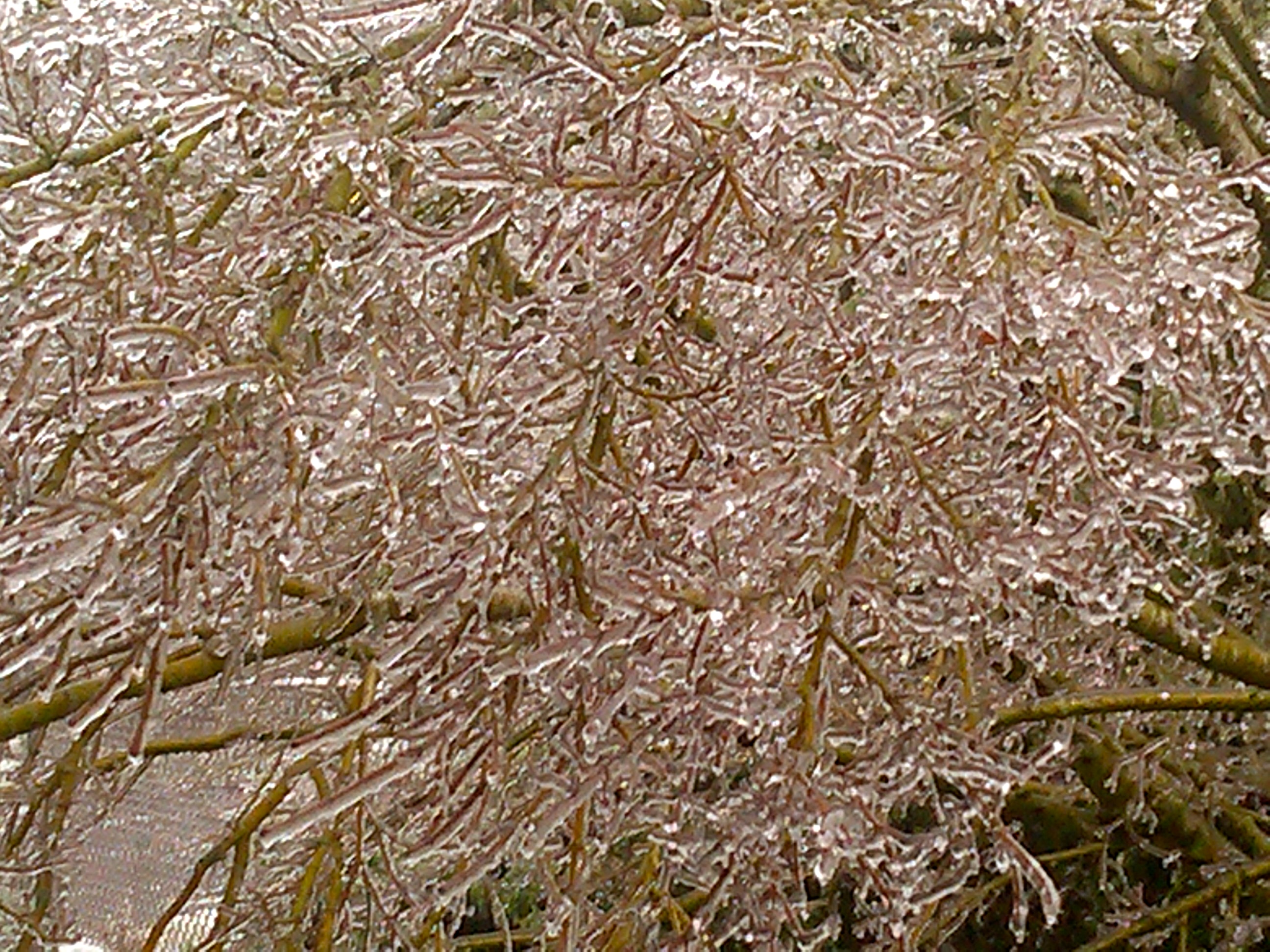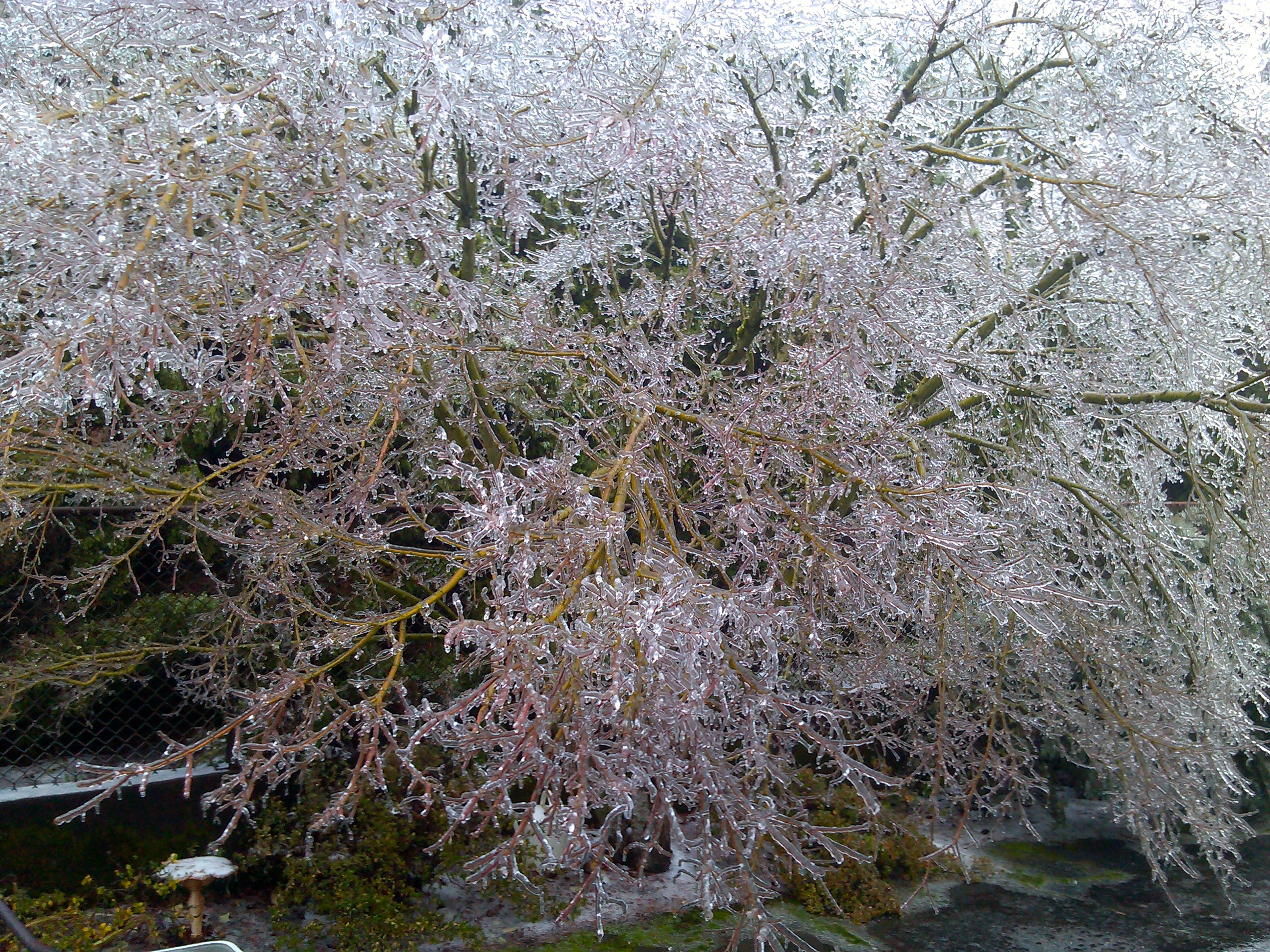 We got hit with an ice storm this weekend, three waves, the first wave a dry snow, then freezing rain, then more freezing rain. We are not in the heart of anything, here, though. We are on the edge of the continent, pushing west still, shoulders at the wheels, more often wet with day old ocean rain from the west rather than freezing winds from the east.