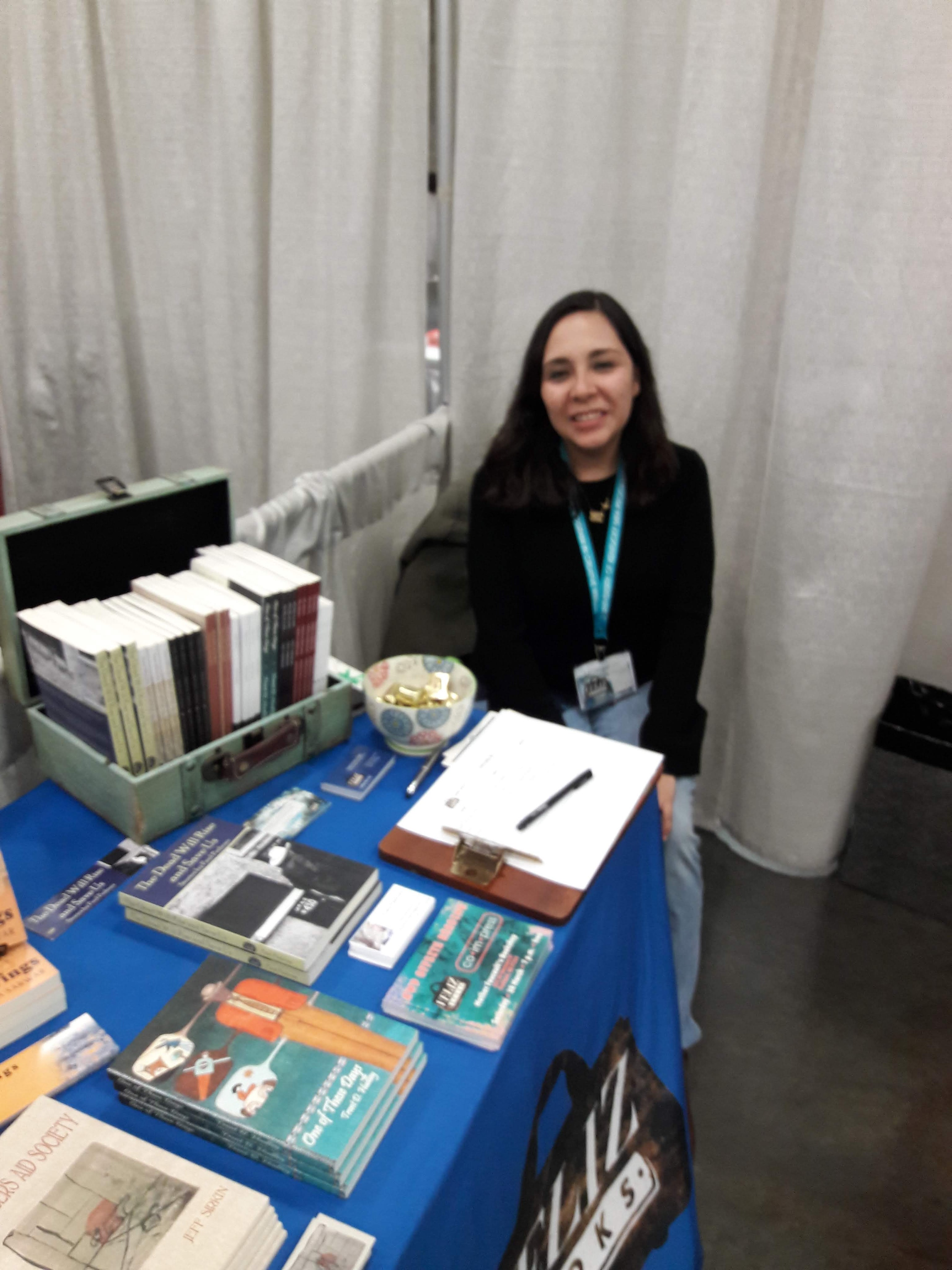 Back in 1969, I found myself miserably in the Army at Fort Bliss, Texas, which is in El Paso. So I stopped at Veliz Books, sharing space with the Rio Grande Review, of the University of Texas at El Paso. From Veliz, I purchased a copy of “La Ilsa De Tu Nombre,” by Gabriela Aguirre. I talked with co-founding editor and publisher of Veliz, Minerva Laveaga Luna. I mentioned my time in El Paso, and talked some about my time at Portland Community College teaching ESL and ENNL in the late 70’s and early 80’s. There was a professor of the bilingual MFA program at the UTEP sharing the booth – unfortunately, I neglected to note his name, and I can’t recall it. He was a good listener, and encouraged me to continue learning Spanish, which I’ve not studied seriously since high school. And they shared with me their hopes for their work, students, and writers.