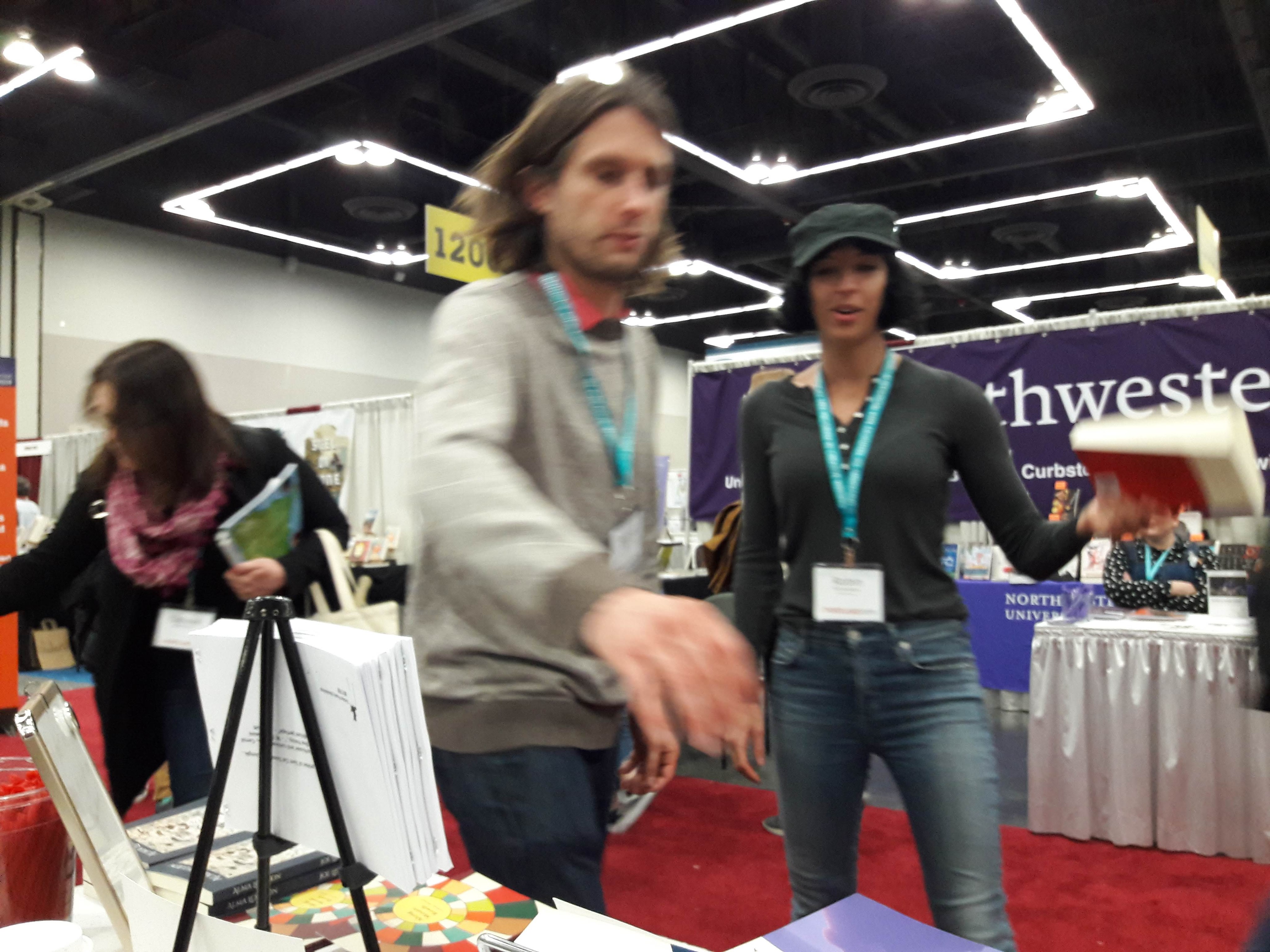 Meanwhile, back at the Berfrois table, editor Russell Bennetts was busy explaining his hopes for his own work and writers. He was able to say hello to a few writers he’d not met in person before, including Robin Richardson, whose one page piece in “Berfrois: The Book,” titled “Stockholm Syndrome,” is a block paragraph with no punctuation marks: