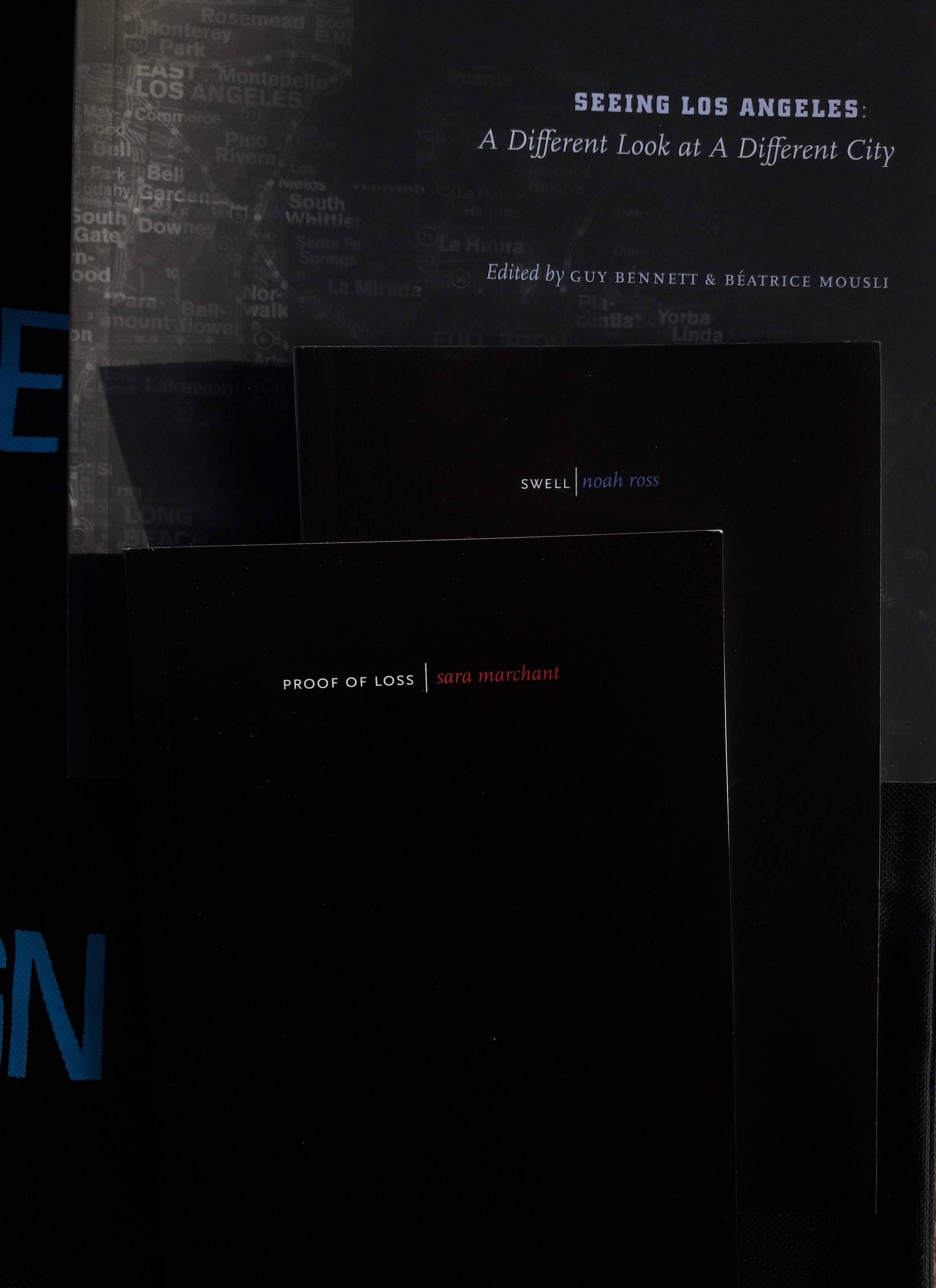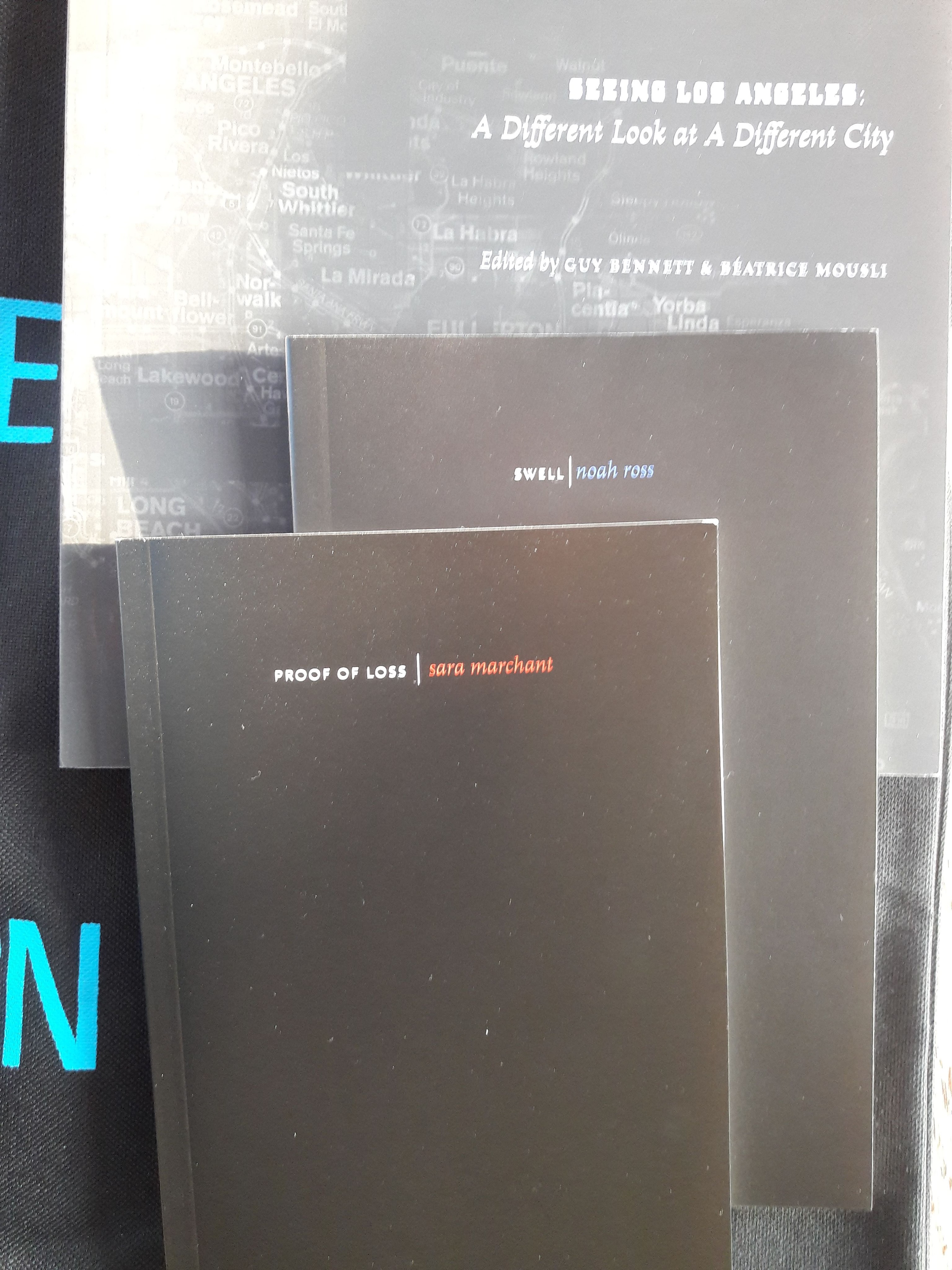 I purchased several of their books: “Seeing Los Angeles: A Different Look at A Different City,” edited by Guy Bennett and Beatrice Mousli; “Swell,” by Noah Ross; and “Proof of Loss,” by Sara Marchant. What sold me on the “Seeing Los Angeles” book was a photo by John Humble, from Shooting L. A., titled “343 Hillcrest Street, El Segundo, May 13, 1995.” My father moved his family to El Segundo the same year the Brooklyn Dodgers announced its move to Los Angeles: 1957. The first house we lived in was at the time one of the oldest in El Segundo, a rental house, an old unpainted wood shingled house, and was located on Hillcrest. It’s of course now long gone, and was located farther north on Hillcrest than the one in the Humble photo. Talking with Kyle, I was reminded of Reyner Banham’s “Los Angeles: The Architecture of Four Ecologies,” now back in print. But I couldn’t recall the title accurately, so there you have it.