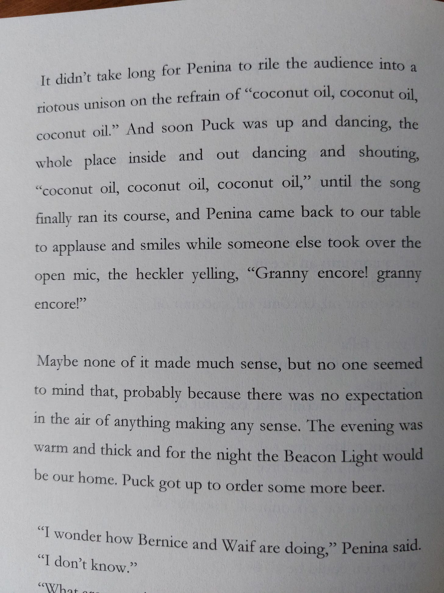 Pages 188-190 from the novel where Penina sings “Coconut Oil”: