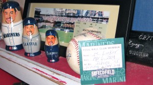 I attended the Mariners’ opening day game in April of 2004, and I caught a foul ball off the bat of Ichiro. I was sitting on the third base side. Ichiro, a left handed batter, hit a hard line drive that curved over the heads of the section to my right, scattering fans, hit the chairs, bounced around, rolled into the aisle, and bounced a couple of steps down, where I swung out of my seat, into the aisle, and scooped it up.