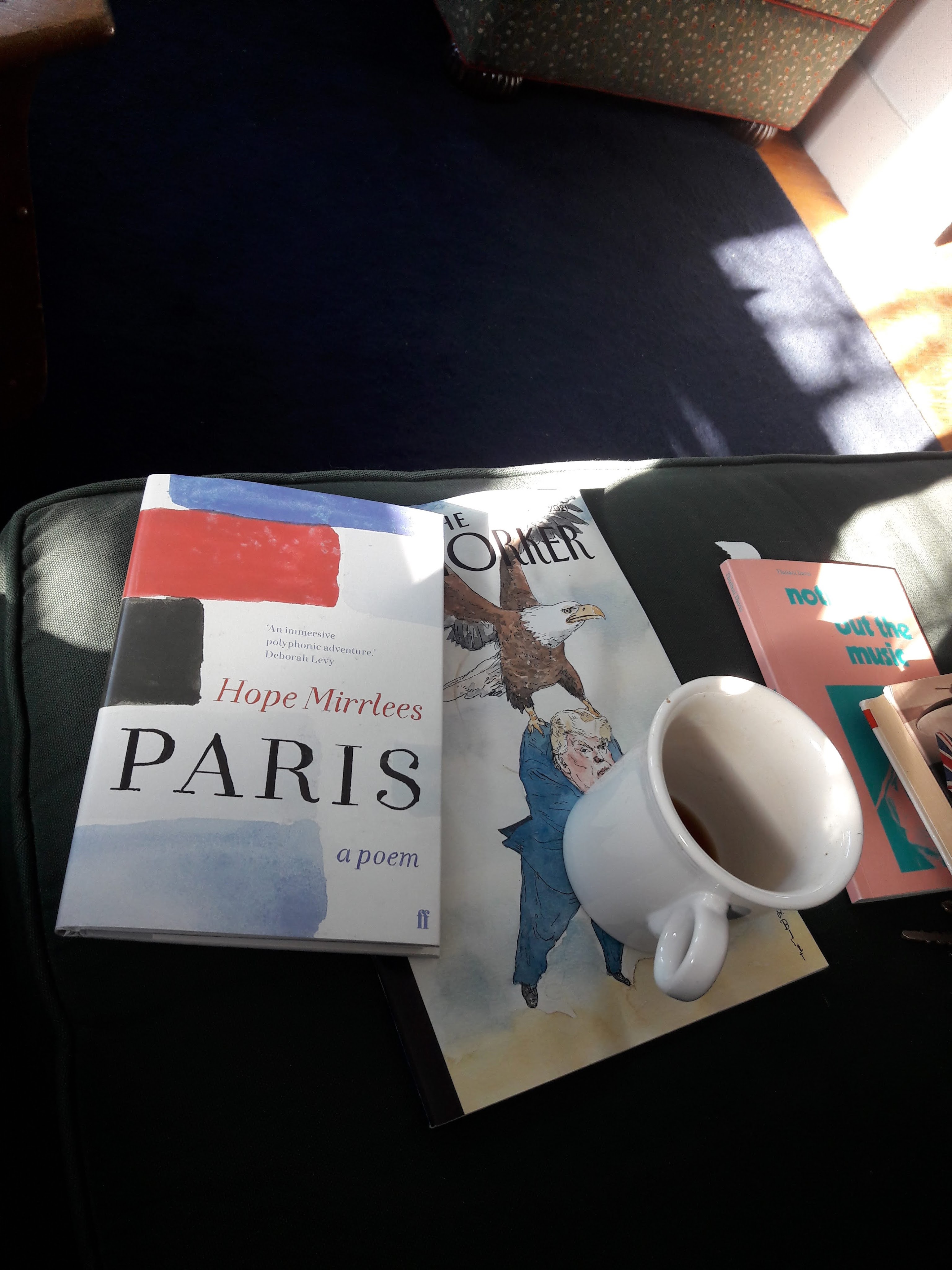 Back inside, a couple of books: “nothing but the music: Documentaries from nightclubs, dance halls & a tailor’s shop in Dakar, 1974-1992” (Thulani Davis, Blank Forms Editions, Brooklyn, 2020, but just out, pre-ordered & in snail mail about a week ago, January 2021, 63 pages); and “Paris: a poem” (Hope Mirrlees, first published in 1920 by the Hogarth Press, 175 copies, handsewn, this edition in 2020, also recently received, Bloomsbury House, London, 59 pages).