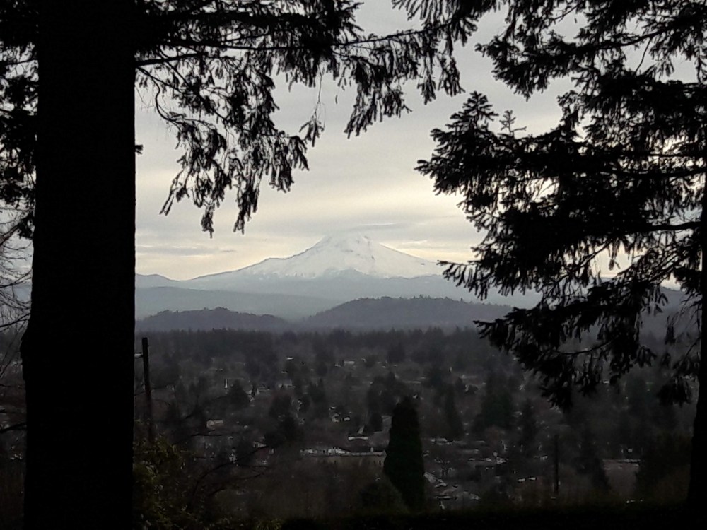 A slow walk focusing on the big and small. To the east, Mt Hood dominates the view. Throughout the park, the popcorn bush is popping its white kernels.