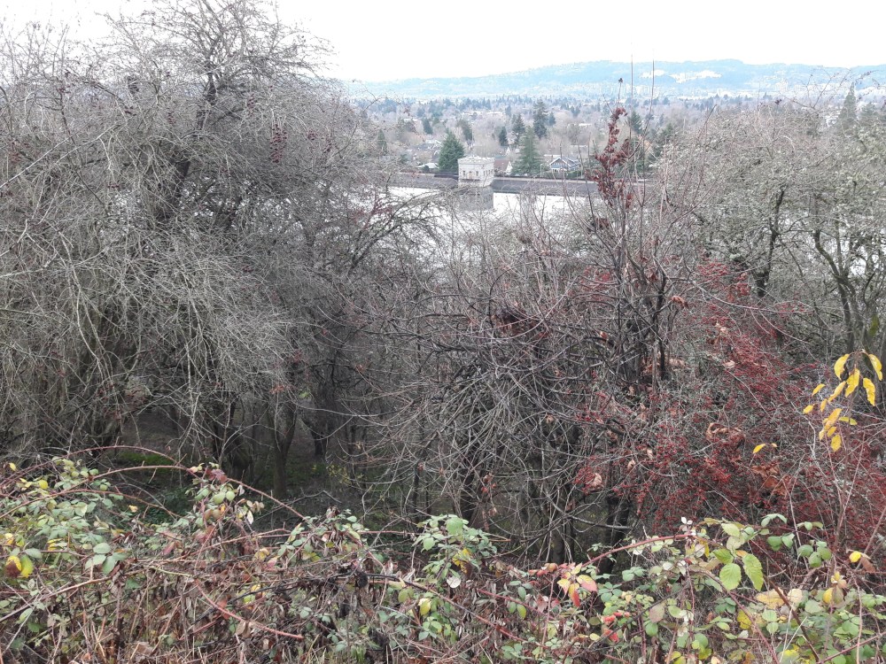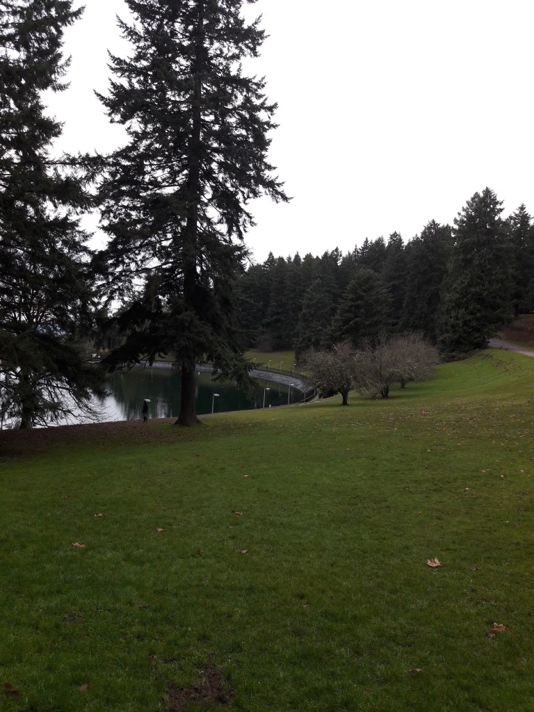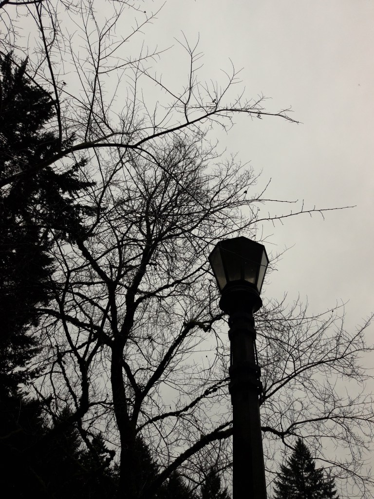 Cold. Wet and damp. Dark. Slippery walk in Mt Tabor Park, where the trees appear ready for the winter solstice.