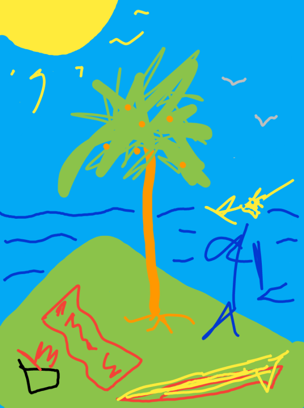 Painting is necessarily physical and messy. Anyone can paint, you don’t need to be an artist, and if you have no paints or canvas or board, you can draw or sketch, on paper or on your cell phone, for example: