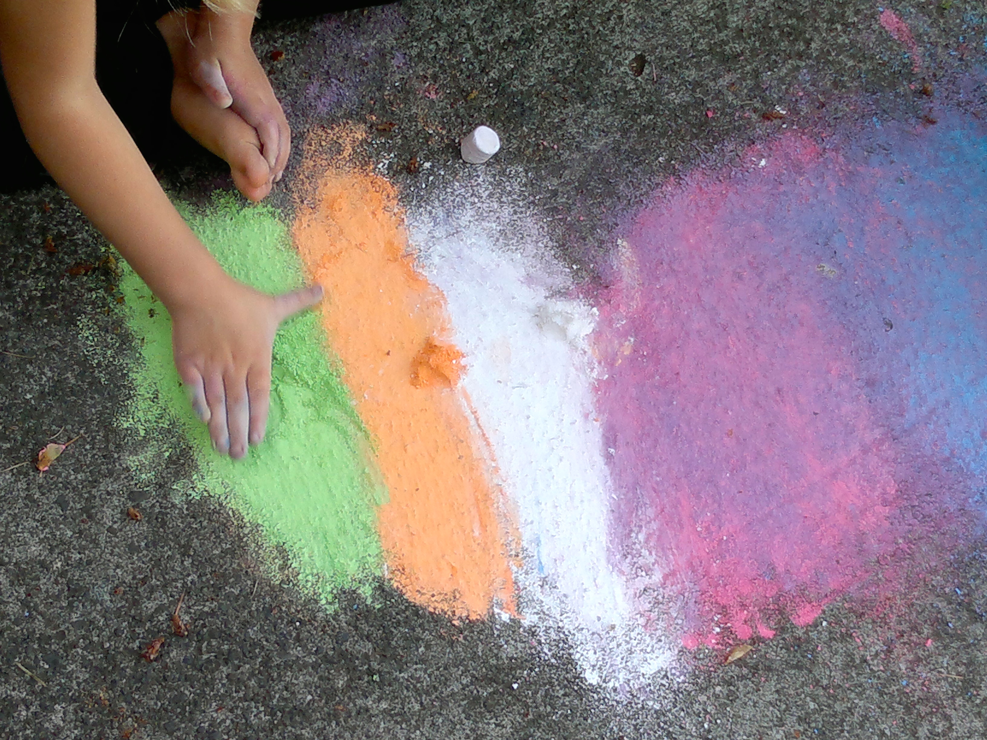 lands on hand chalk covered walk