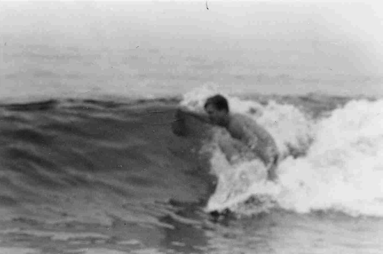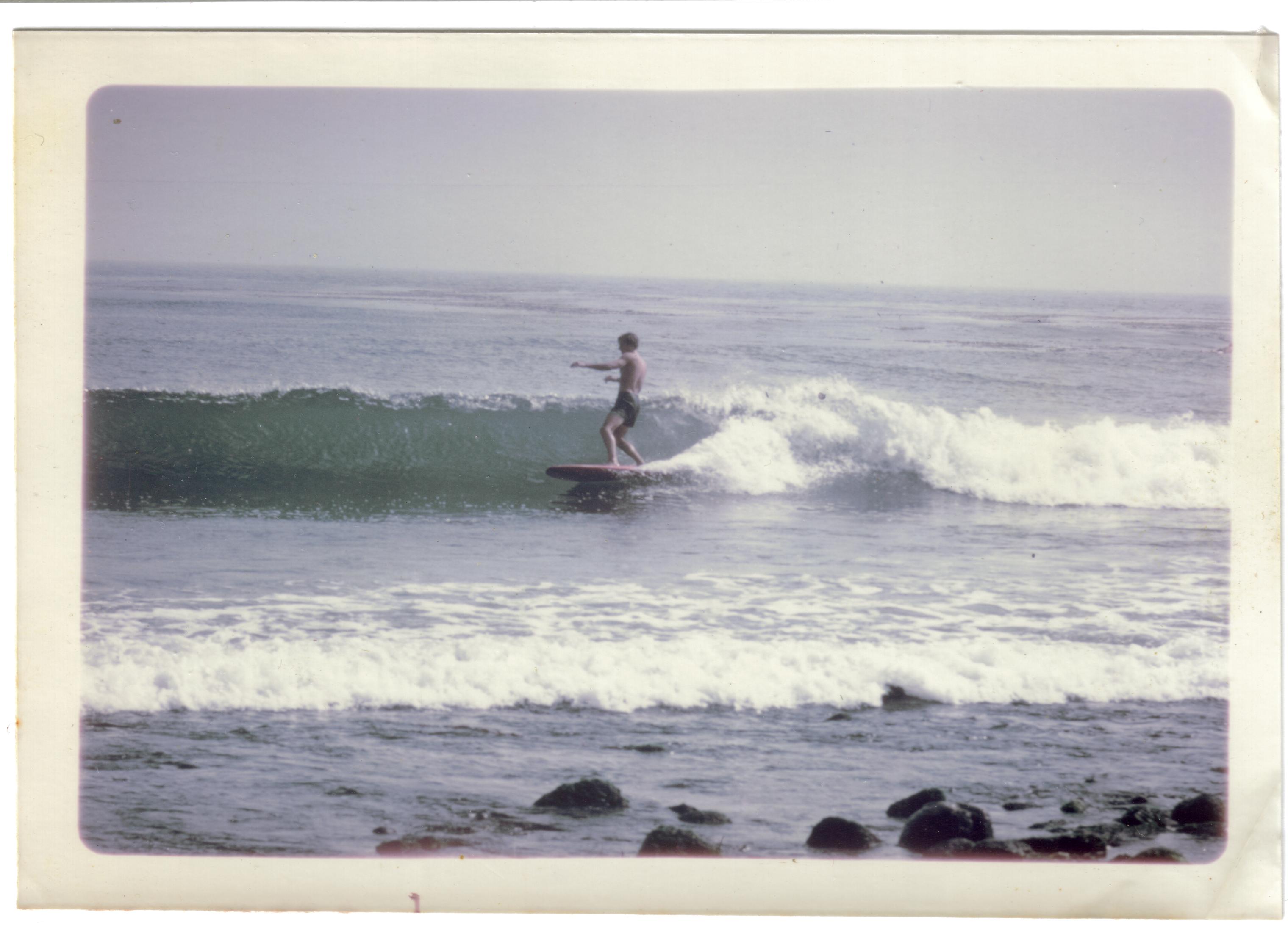 A weathered surfer slowly descends the creaking