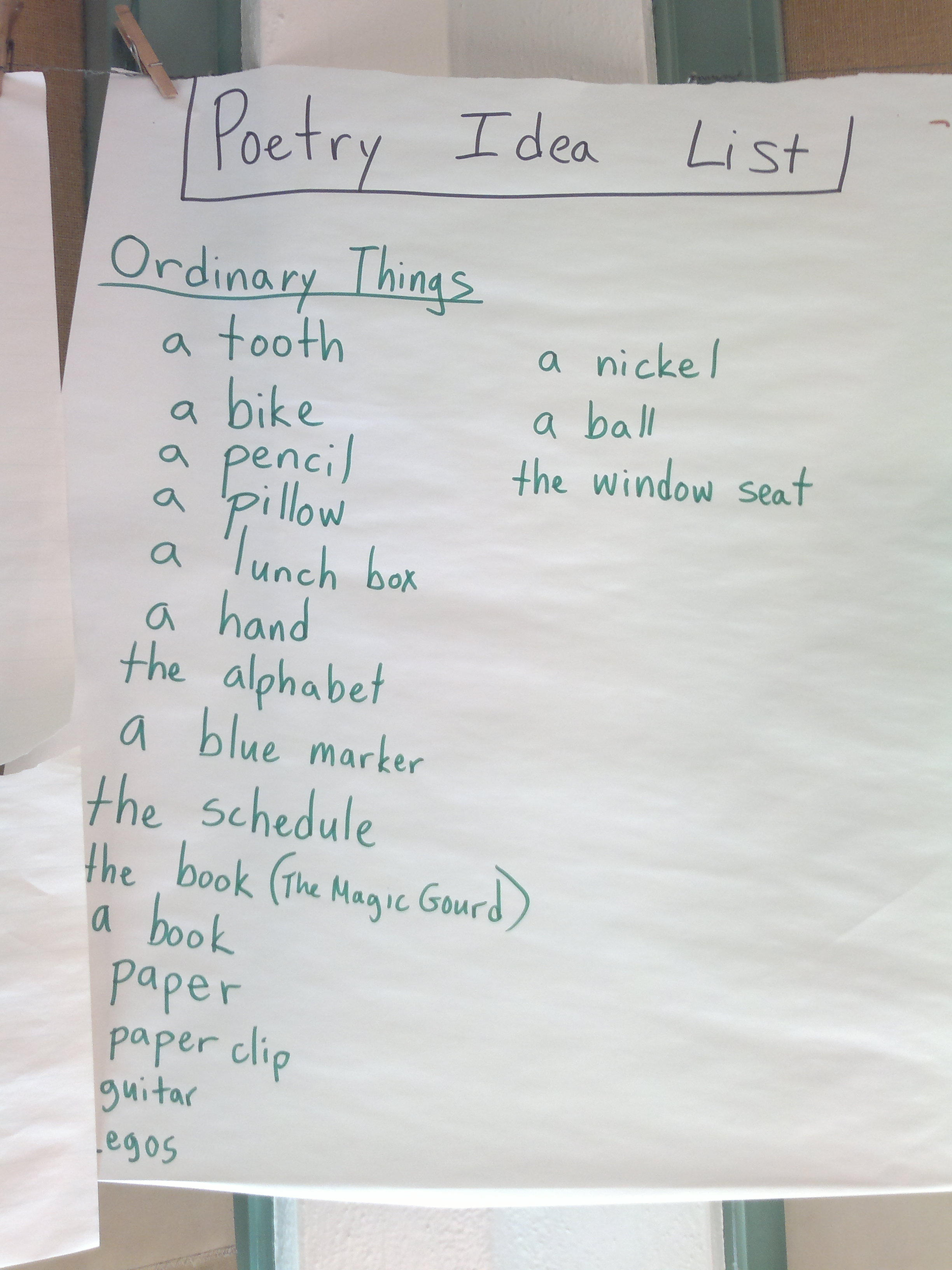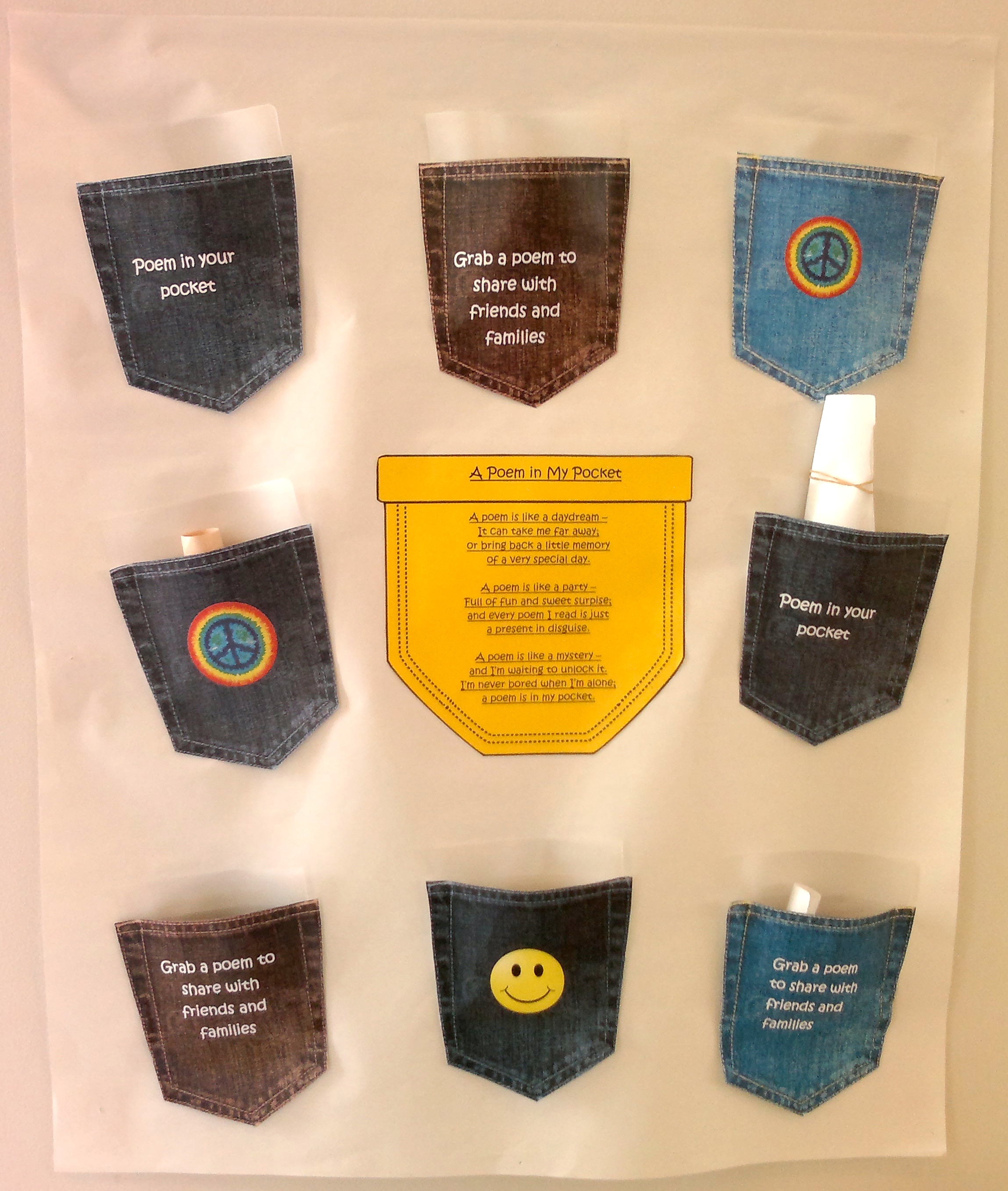table pockets with poems.