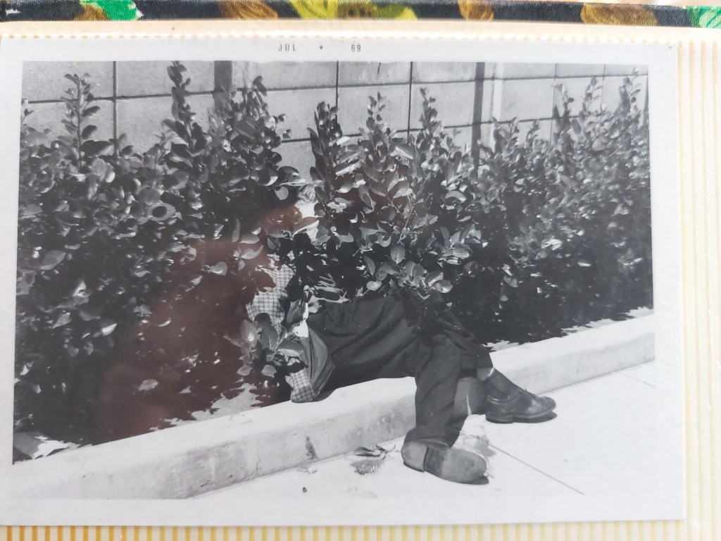 I would have taken the photos out of the album, but they’re stuck to the pages now under the plastic sheet covers, which are also stuck. I edited a couple in Google Photos, but that’s much ado for not much more, and anyway I prefer the attempt at getting the originals with my camera as shown here, with no touching up.
