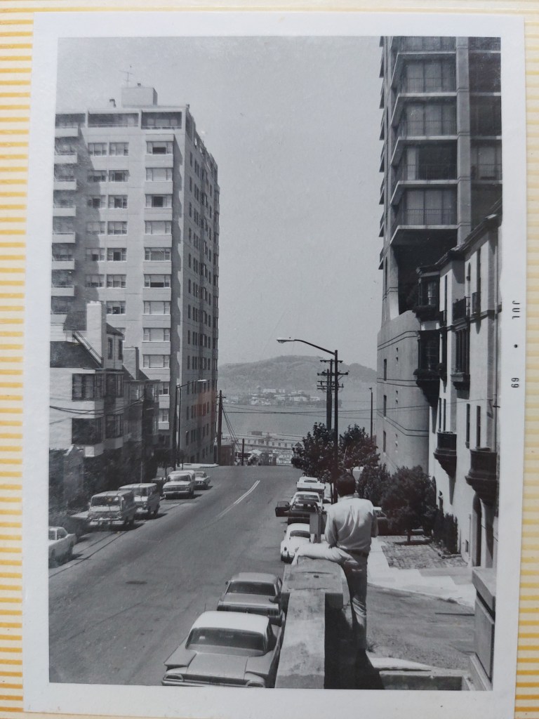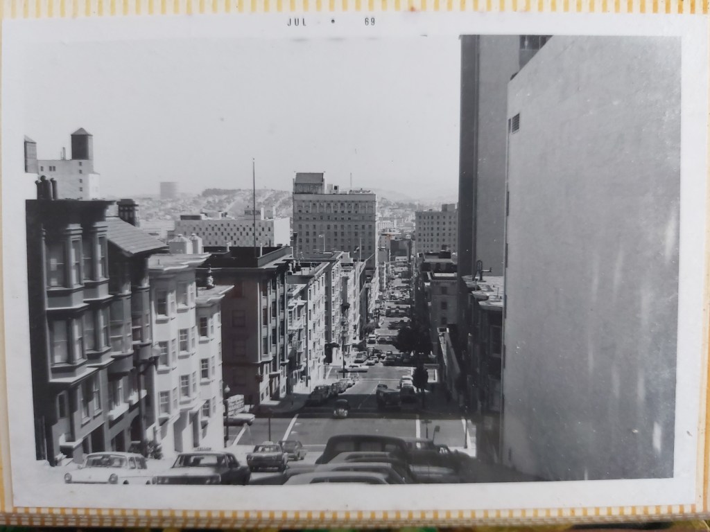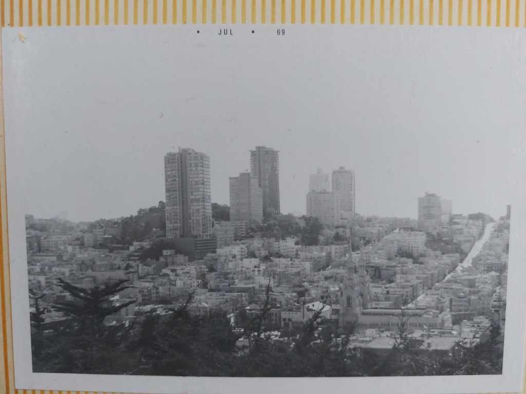 Does anyone make photo albums anymore? In July of 1969, I flew from Los Angeles to San Francisco, where I spent a few days wandering around town, taking a few photos. Included here are a few black and white photos taken with my Exakta 500 – purchased used at the photo store on Main Street in El Segundo to take surfing photos. It came with a 50 millimeter / 2.8 lens. I didn’t have a light meter and guessed at the settings. I would have been using Kodak 35mm black and white film, not sure what speed.