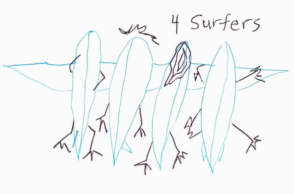 One summer, I worked for one of my Dad’s friends in the body and fender shop at a Ford dealership in Culver City. He entertained the idea of getting a race car and I would be his driver. He foreshadowed the advent of the short surfboard. “Why are the boards so big?” he asked. “You could ride a two-by-four if you could get up the momentum.” Another summer my Confirmation sponsor hired me to work as a lab assistant at UCLA, where he was working on a graduate degree, the chalkboards in the lab covered with formulas and equations that looked like hieroglyphs left by sanderlings bicycling around the wavelets at El Porto.
