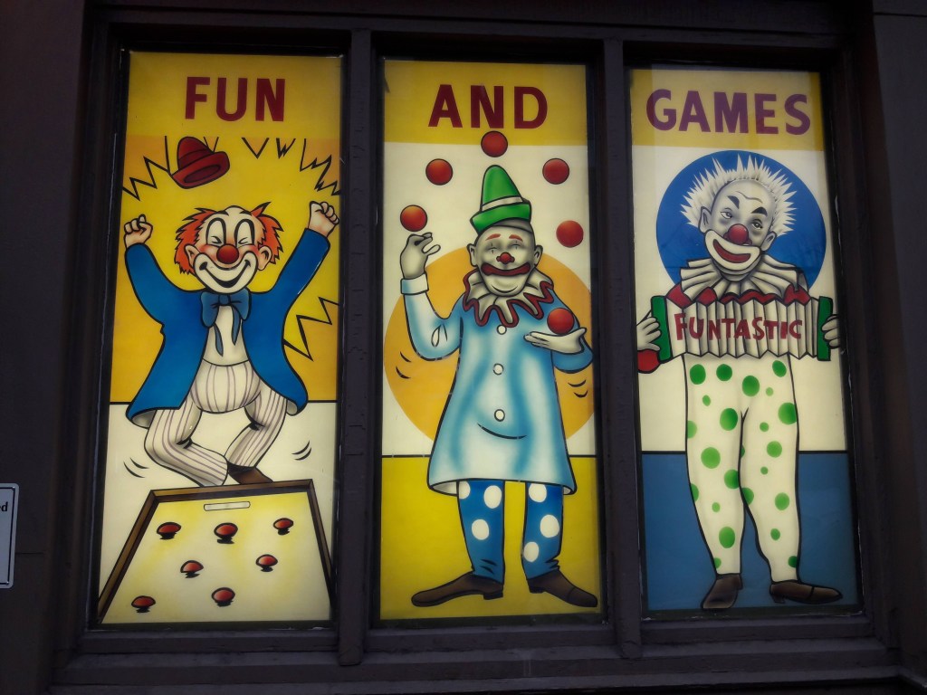 There are identities we create, names we name ourselves, and narratives we stick to (or revise, as circumstances evolve), even as the plots don’t make any sense, one event not rationally leading to the next, like a walk through a circus. Like clowns, we “prepare a face to meet the faces,” as Eliot’s Prufrock said. Whereas, we might say simply, as Brooks summarizes: